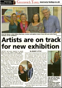 The resulting exhibition, “On the Line: Art and Poetry @ Greenwich Station”, was shown at the Made in Greenwich Gallery in October 2014. The work chimed well, with different but complementary styles from painters Gillian Burrows, John Govett and David Weekes, and three poems — matching the tone of each artist.