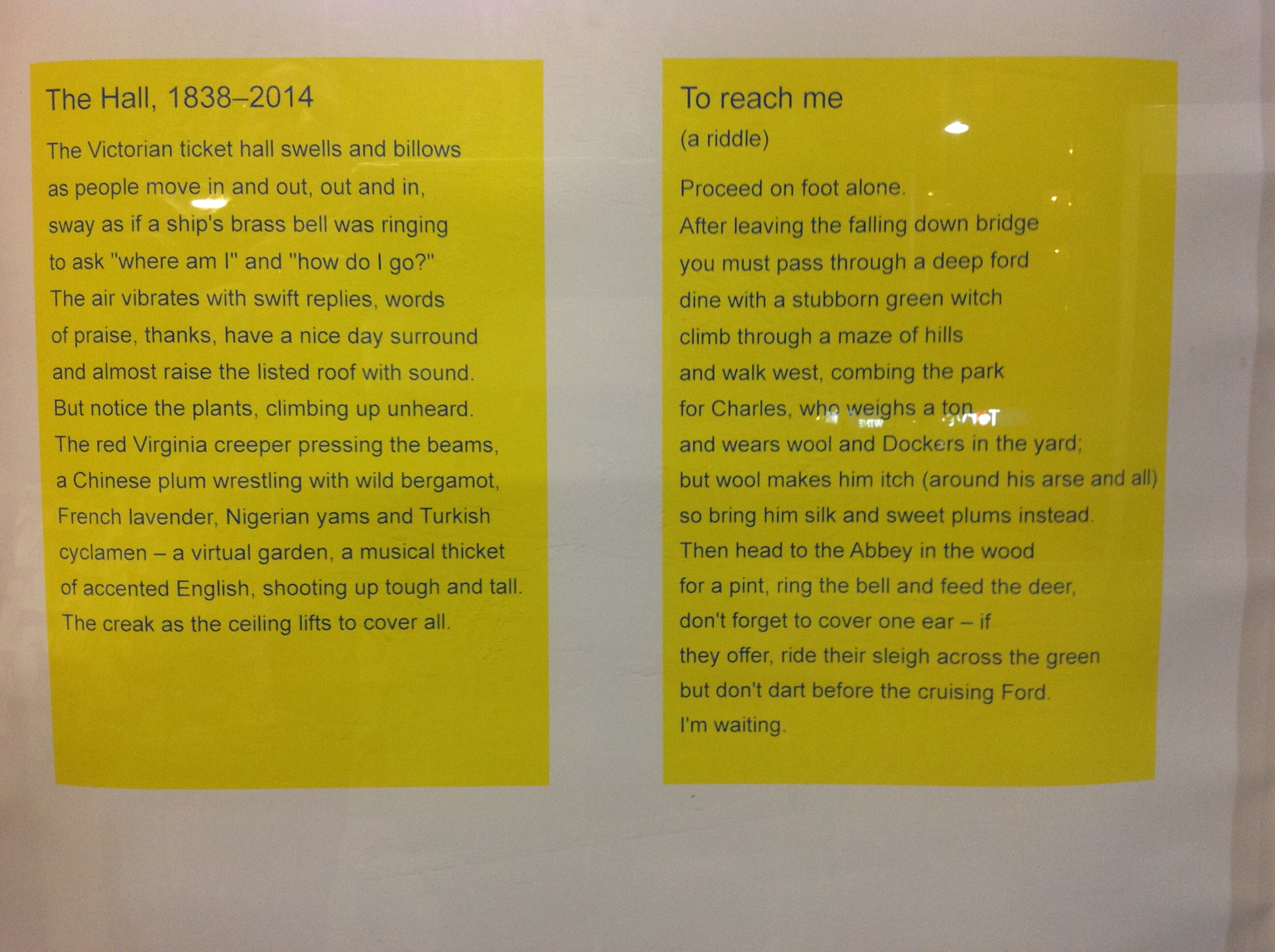 In August 2014 I became poet-in-residence at Greenwich Rail Station.